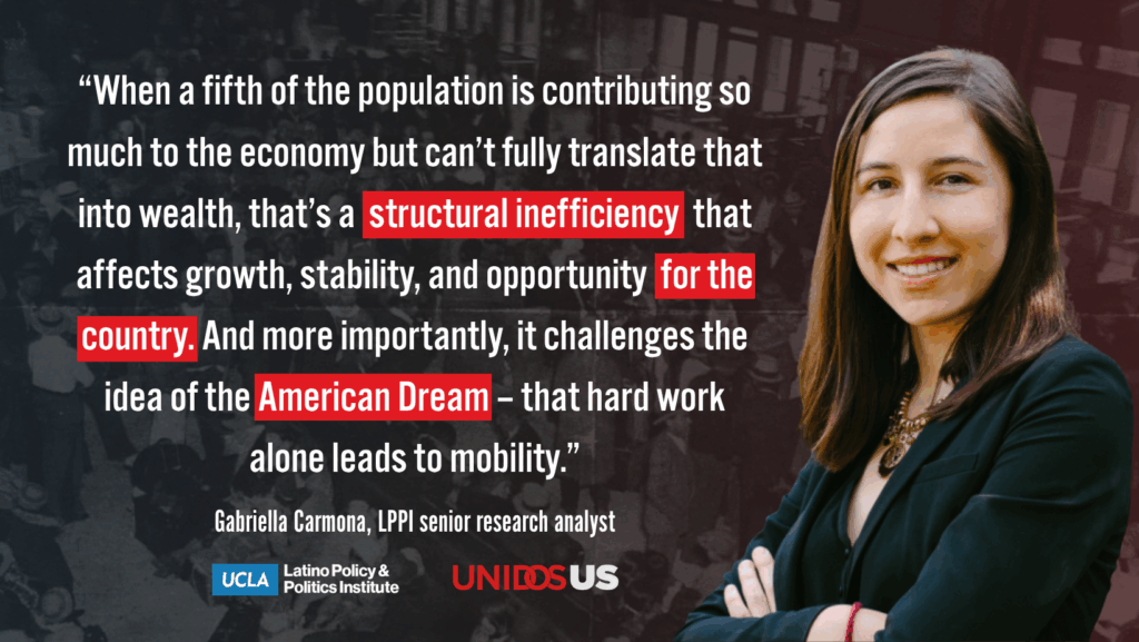 Latinos make up almost 20% of the U.S. population, generating $4.1 trillion in economic output. Yet, Latinos continue to own far fewer wealth-building assets – such as homes, savings, and investments – than their white peers. We had a Q&A with Gabriella Carmona, a senior research analyst at LPPI and co-author of Sueño Incompleto: A History of the Latino Wealth Gap in the United States, a new report examining centuries of policy patterns that created today’s systemic and cyclical wealth gap.