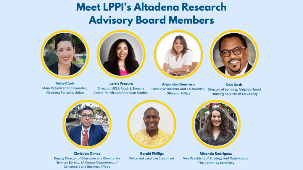 “It’s truly an honor to bring this talented group of community advocates together to help shape our research,” said Gabriella Carmona, senior research analyst at LPPI and project lead. “With their expertise, we can produce findings that are grounded in community and useful to those working every day to rebuild and strengthen housing resilience in Altadena.”